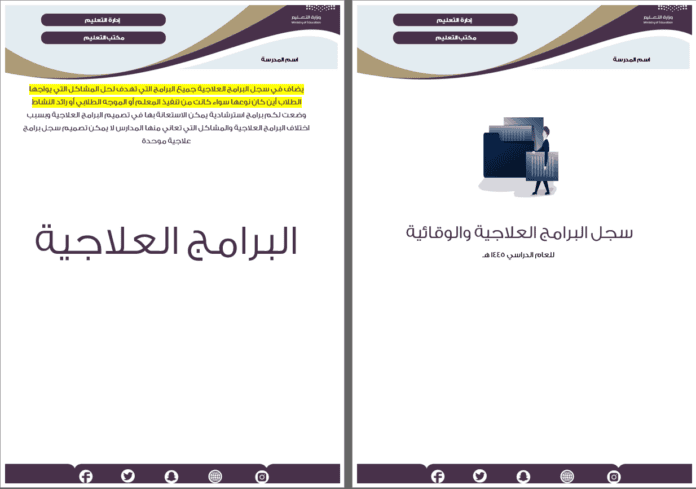 سجل البرامج العلاجية والوقائية ضمن متطلبات التقويم الذاتي يحتوي السجل على نموذج مقترح للبرامج العلاجية والوقائية يمكن الاستعانة بها في إعداد البرامج
